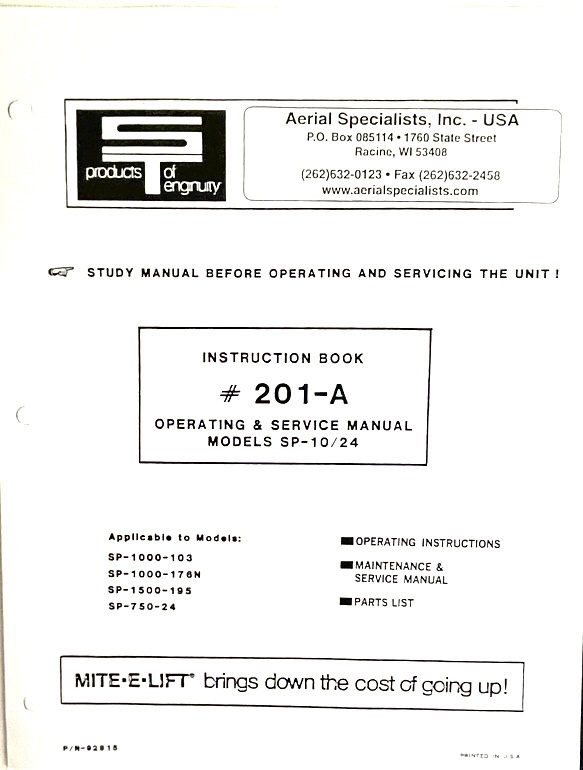 Mite-E-Lift Manual Reference & Equipment ID Guide | Aerial Specialists